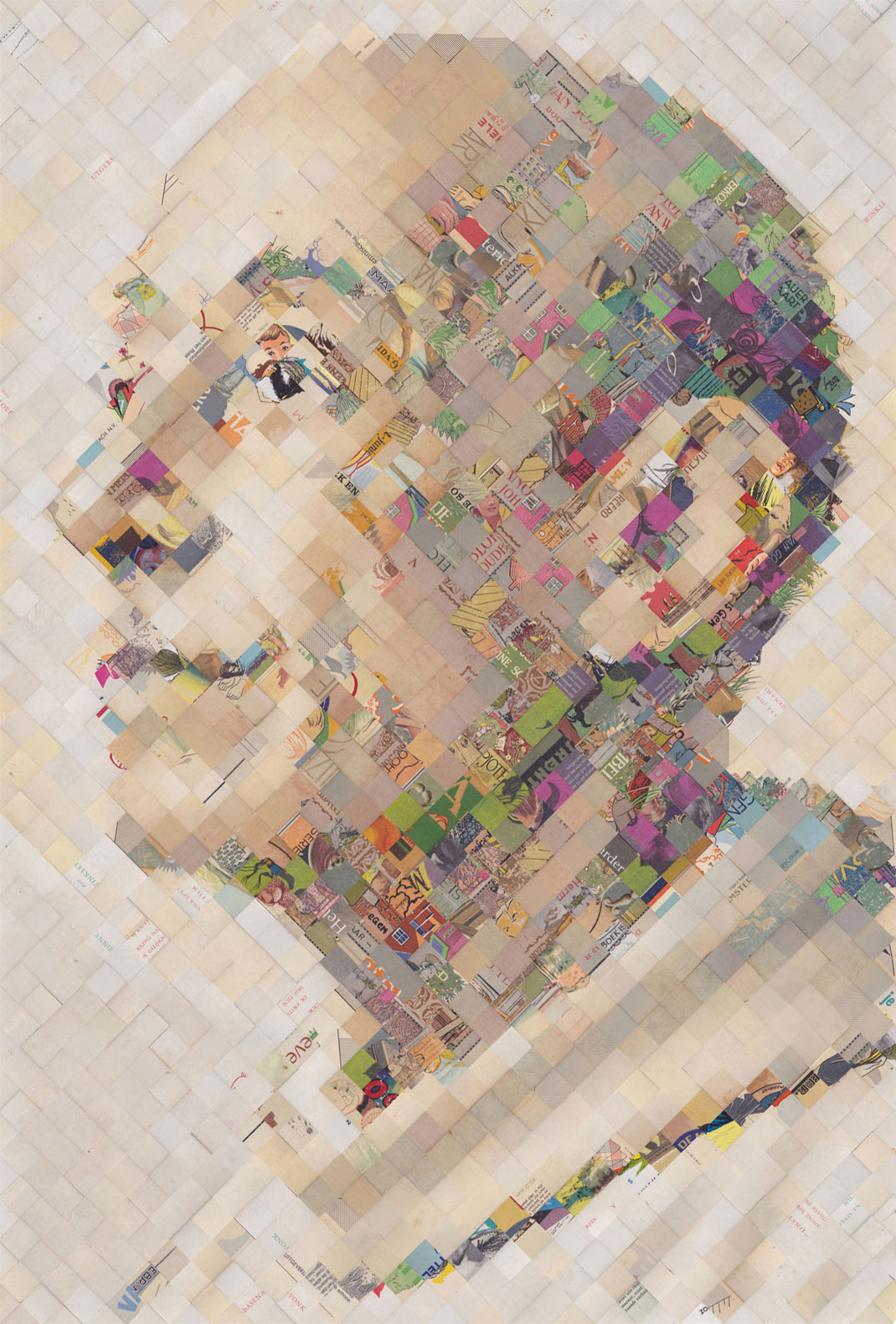 Forest using tiles cut out of works of Seurat, Lautrec and van Gogh